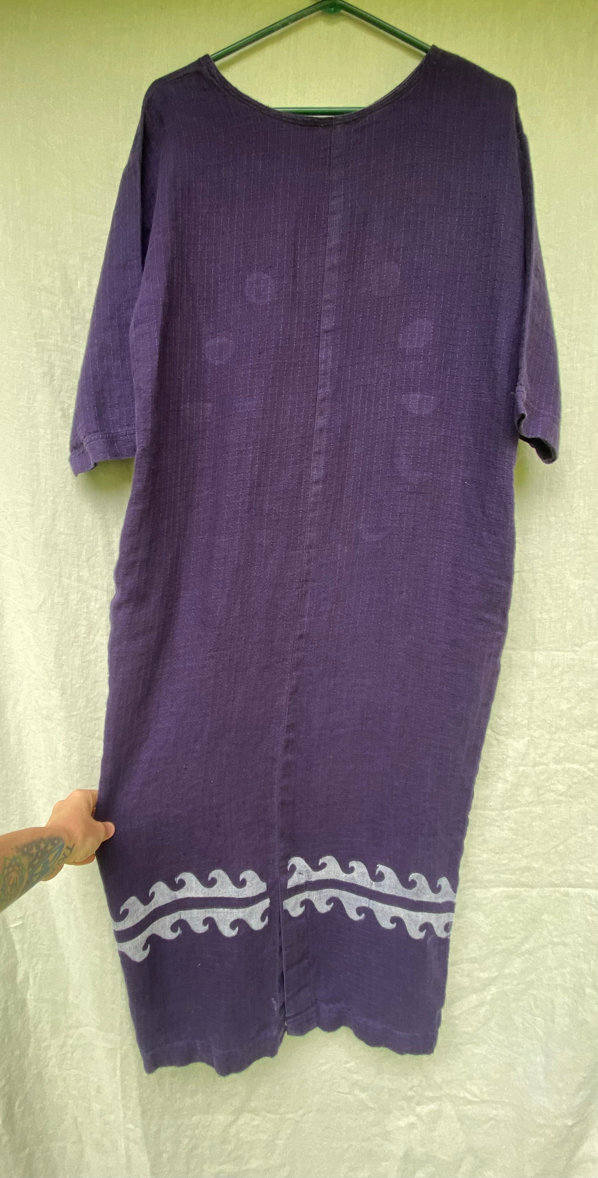 Up-cycled, one of a kind, hand-printed with hand-carved stamps, inspired by the beauty and magic of the moon, the sea, and all their feminine mysteries.