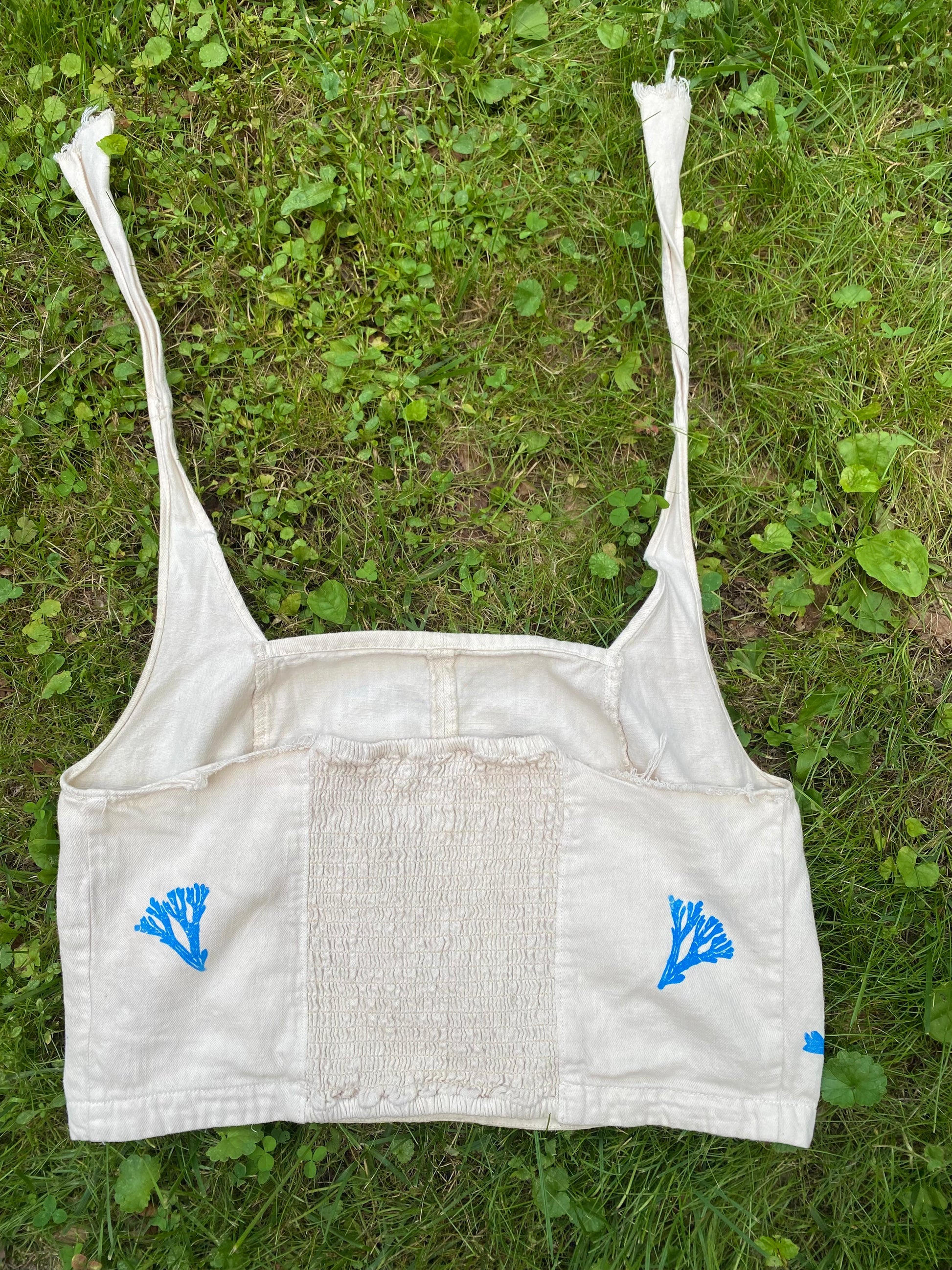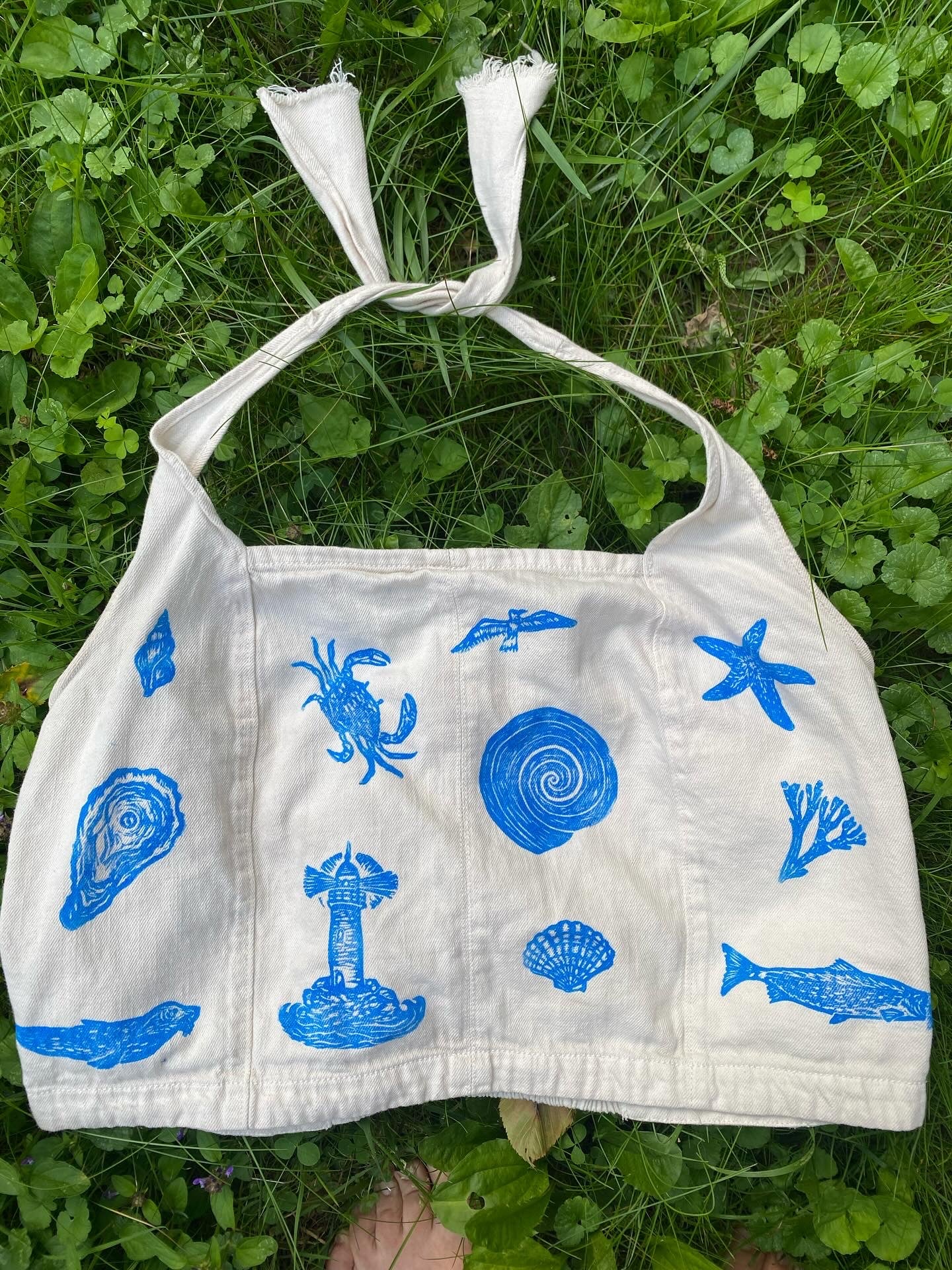 Up-cycled, one of a kind, hand-printed with hand-carved stamps, inspired by the beauty and magic of the moon, the sea, and all their feminine mysteries.