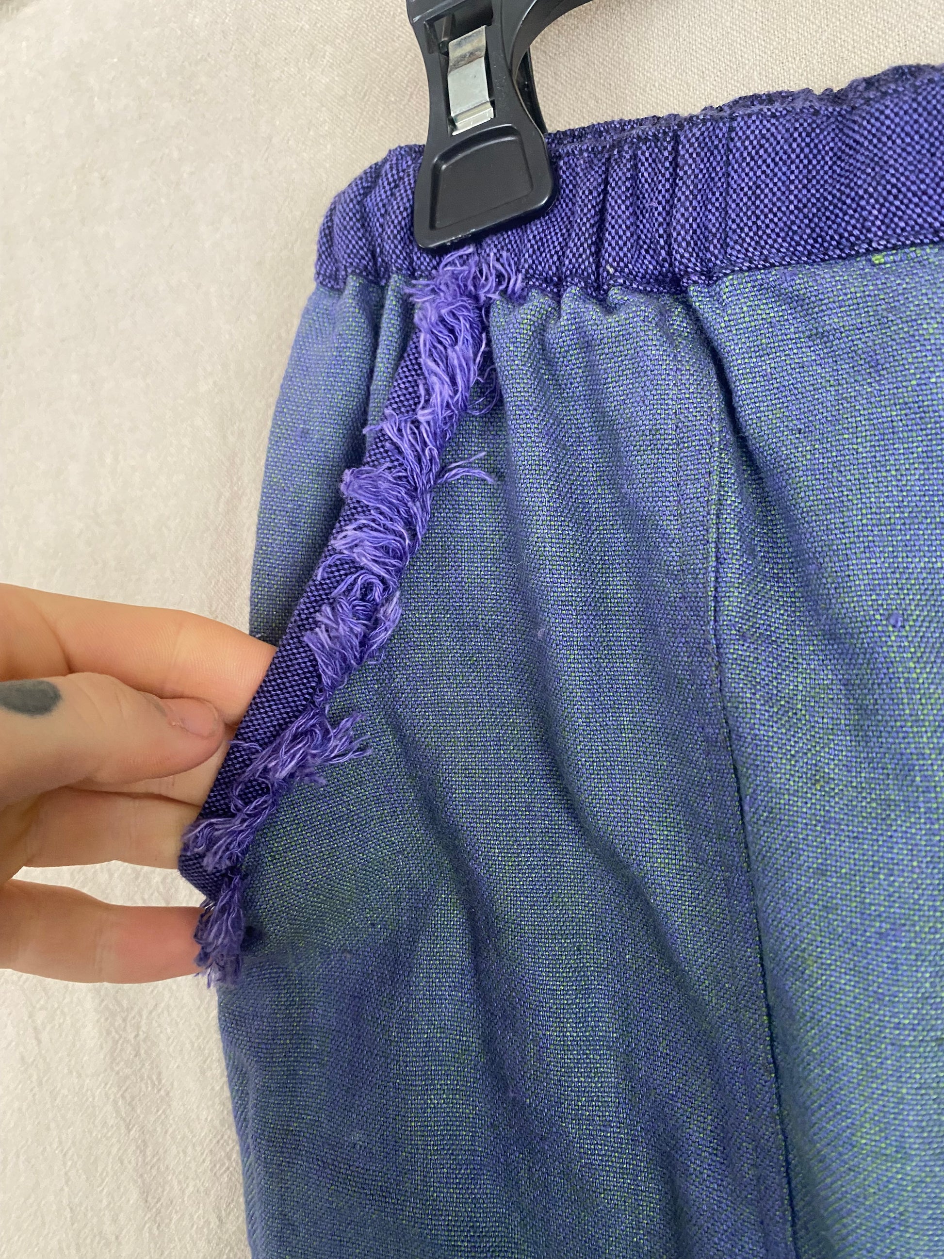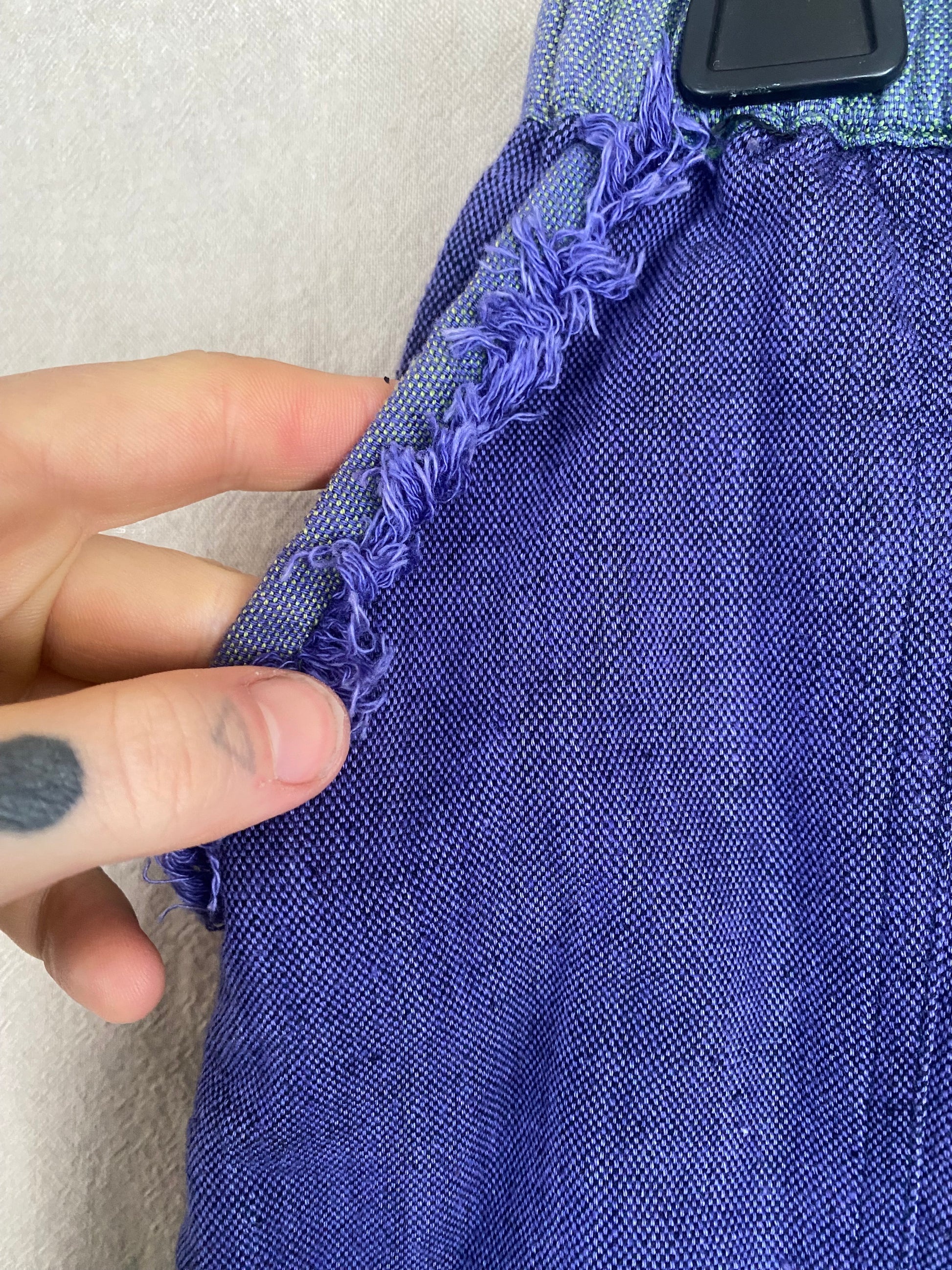 Any items that I feel the integrity/structure of the piece is compromised with a rip or missing button, or stain I will markdown on price or list as a second. All other tiny smudges of ink will be considered part of the uniqueness of the hand-print!