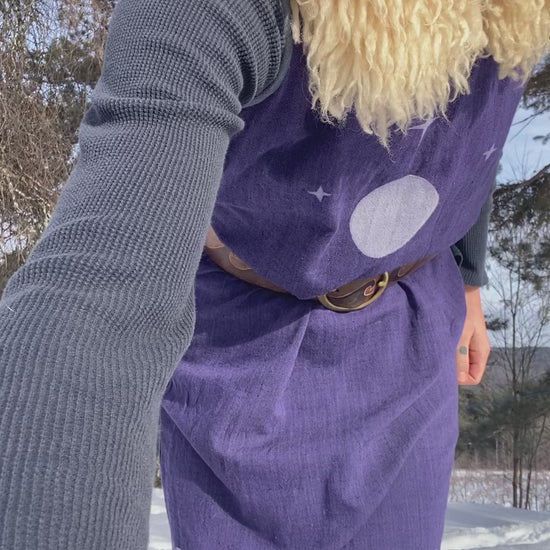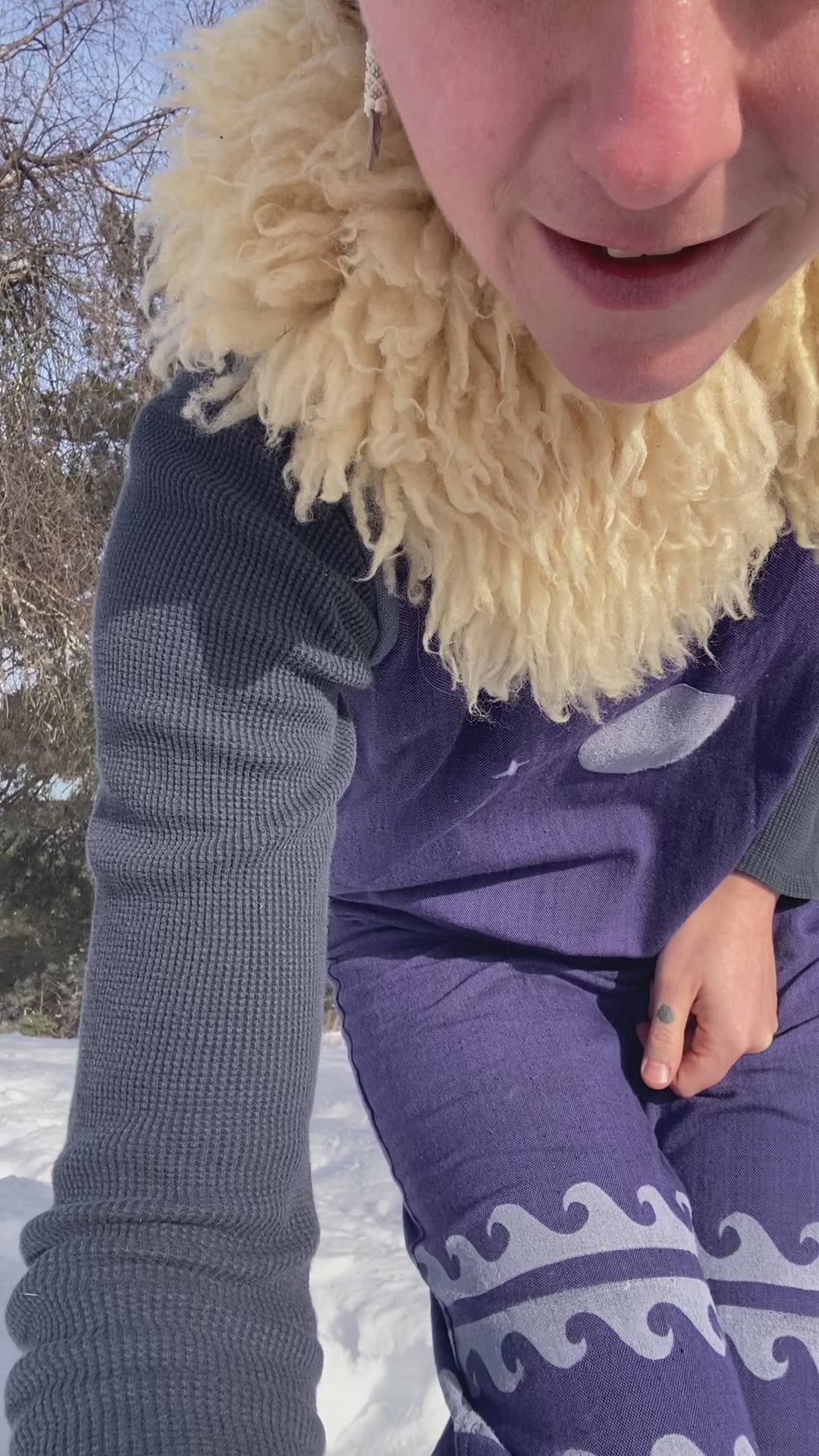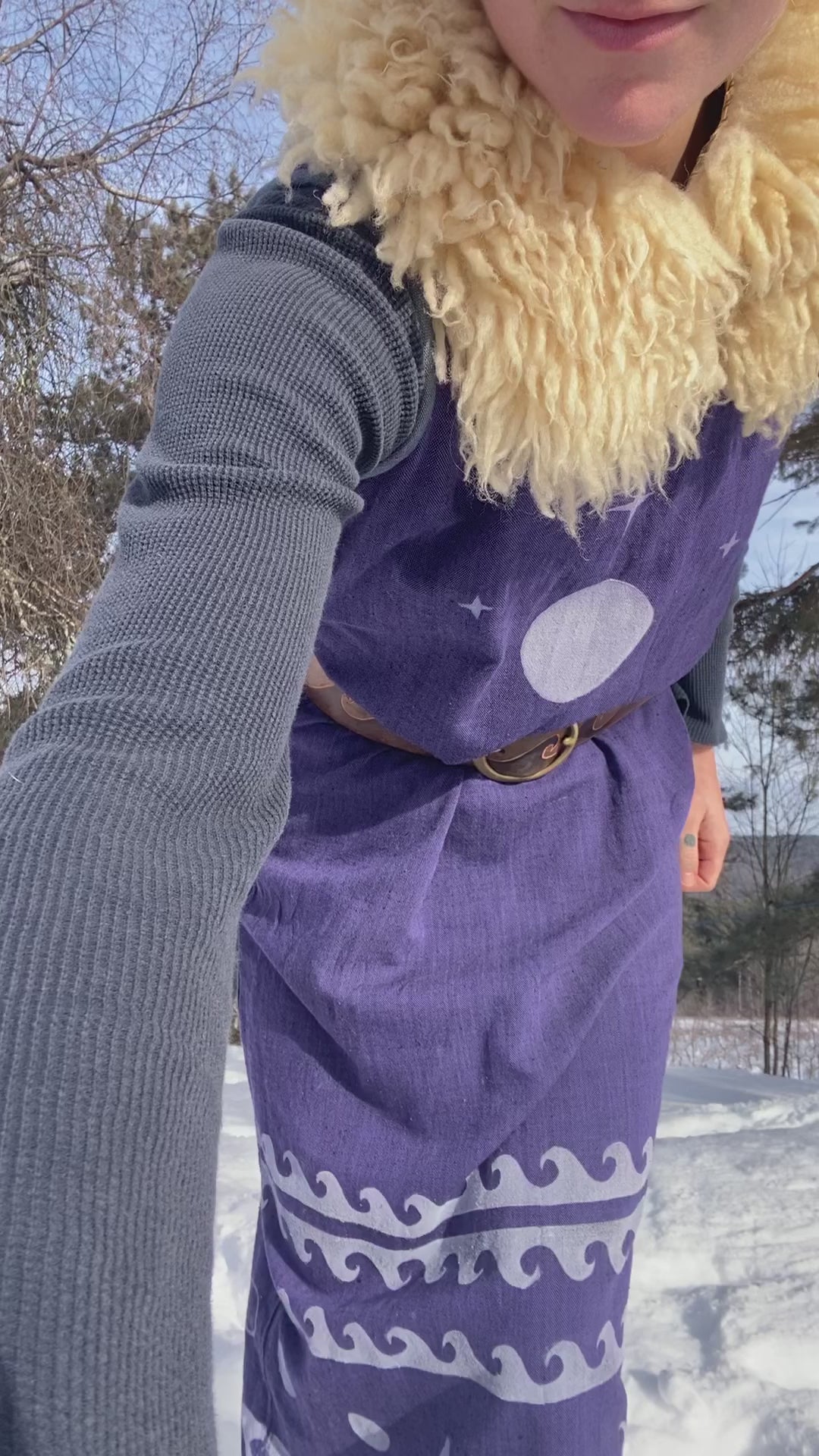 ~ Up-cycled, one of a kind, hand-printed with hand-carved stamps, inspired by the beauty and magic of winter's stillness, watery depth of mystery, inner-sight, moon cycles, and threshold time ~