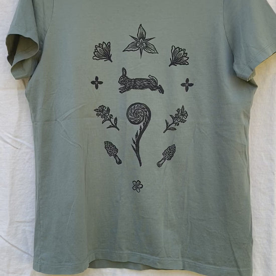 Up-cycled, one of a kind, hand-printed with hand-carved stamps, inspired by the beauty and magic of Spring in full bloom.