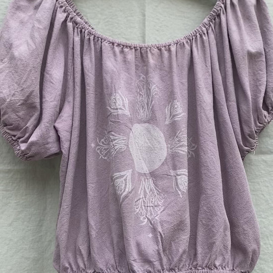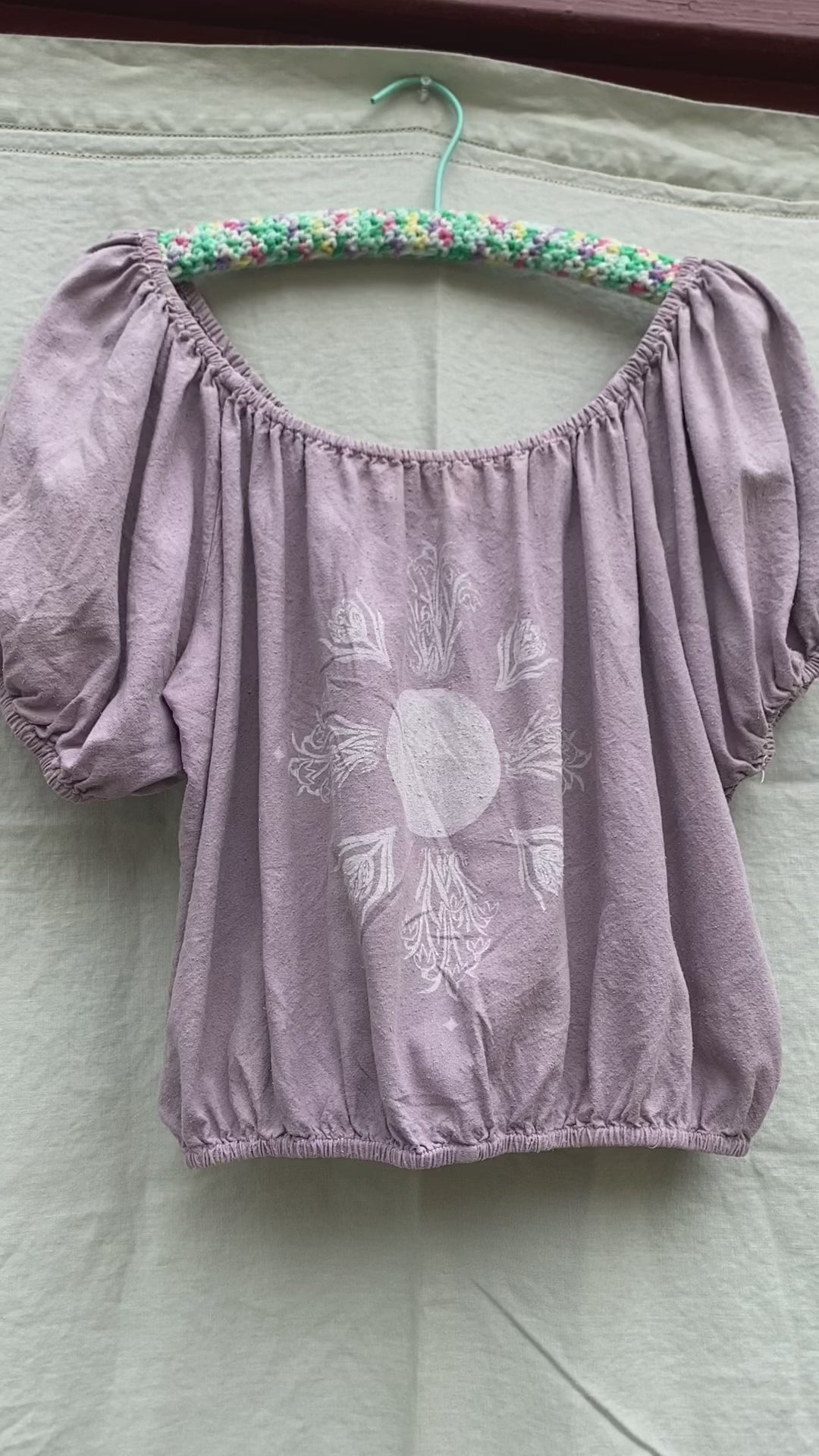 Item details: Honeydove Vintage raw silk top, plant dyed. XL but very flexible sizing, can fit a range. Puff sleeves.