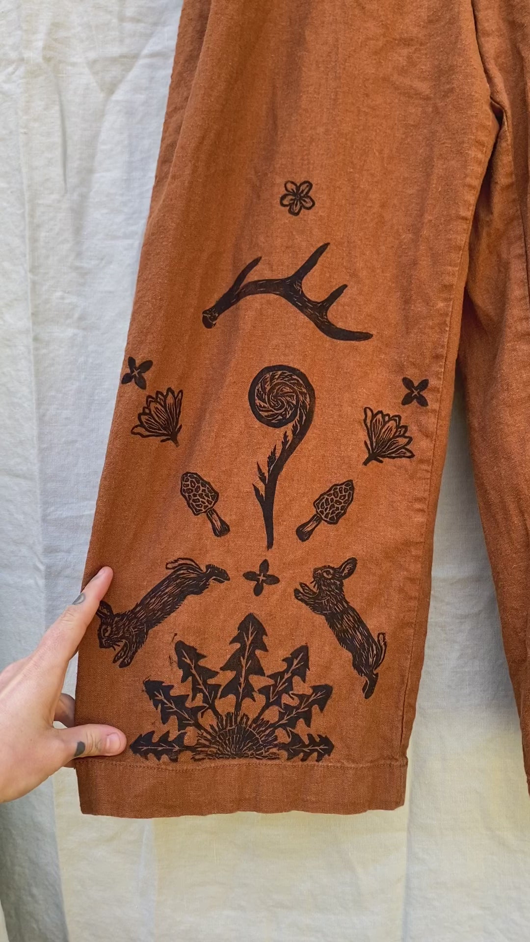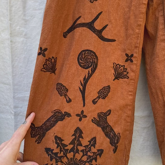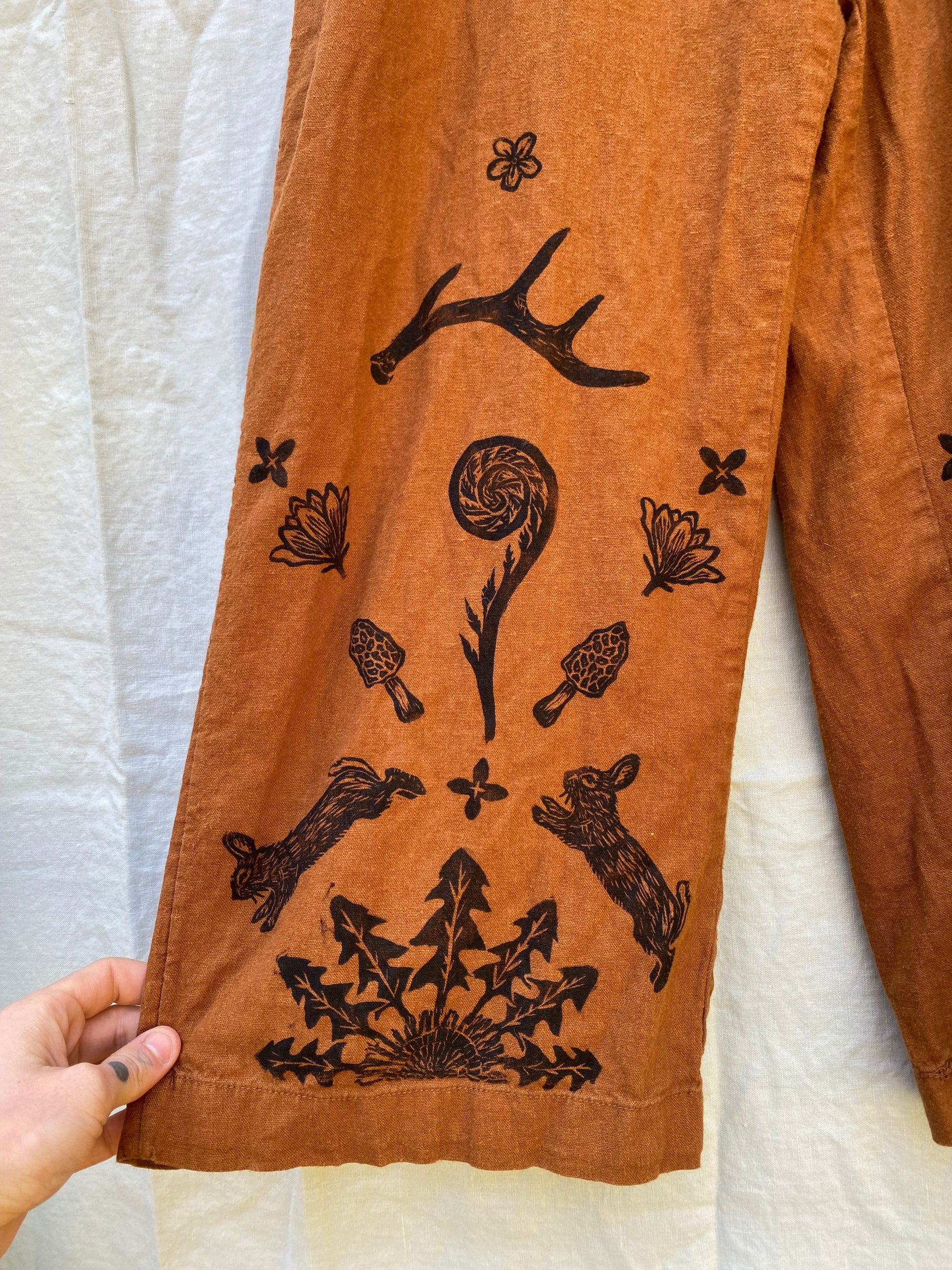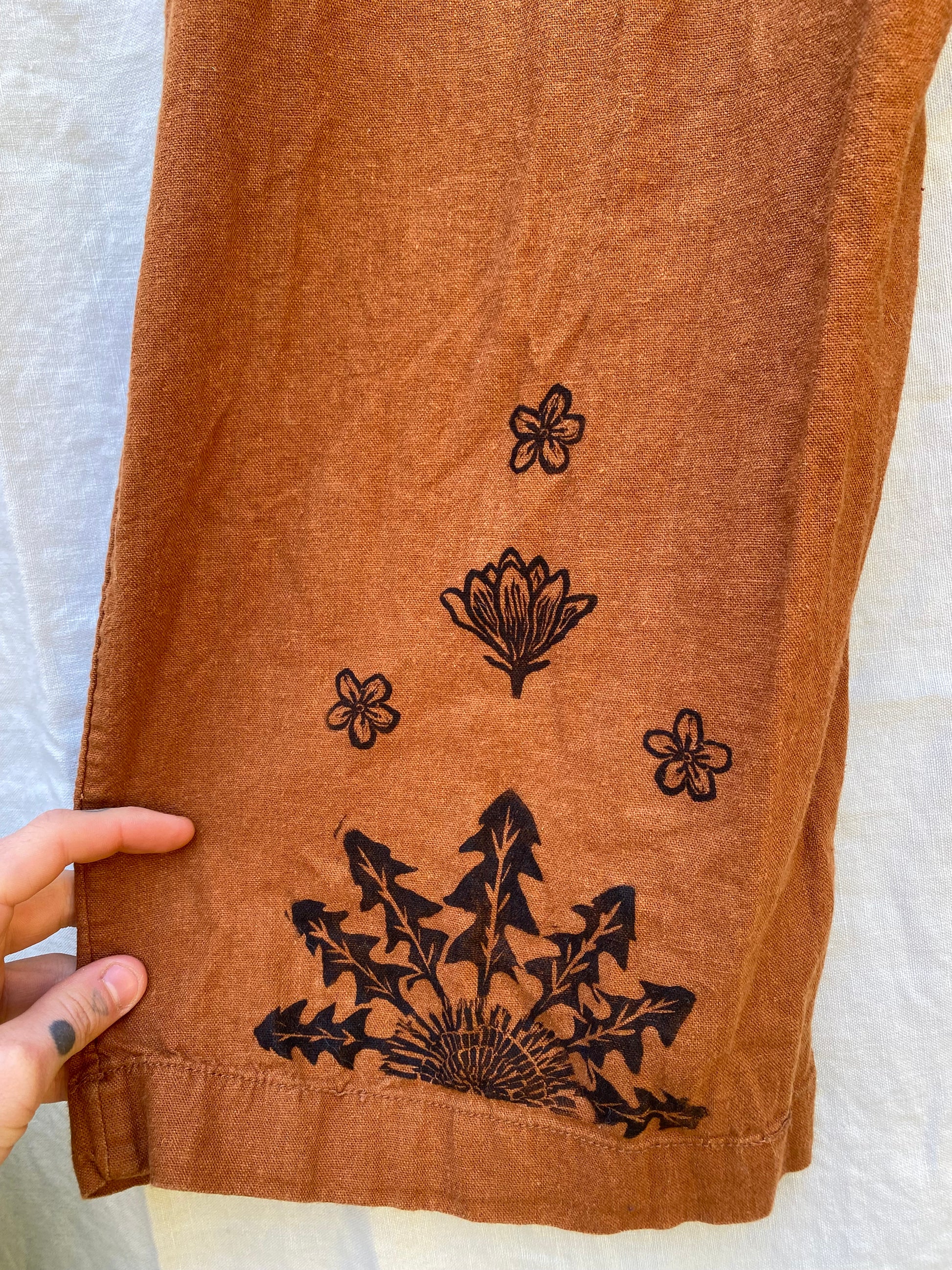 Up-cycled, one of a kind, hand-printed with hand-carved stamps, inspired by the beauty and magic of Spring in full bloom.