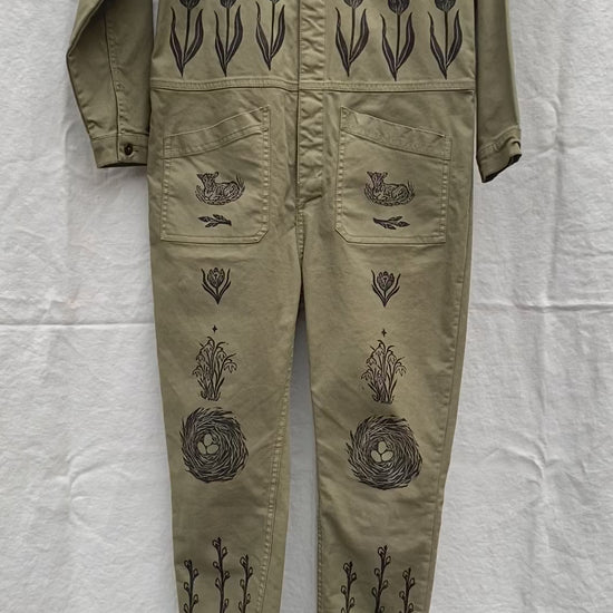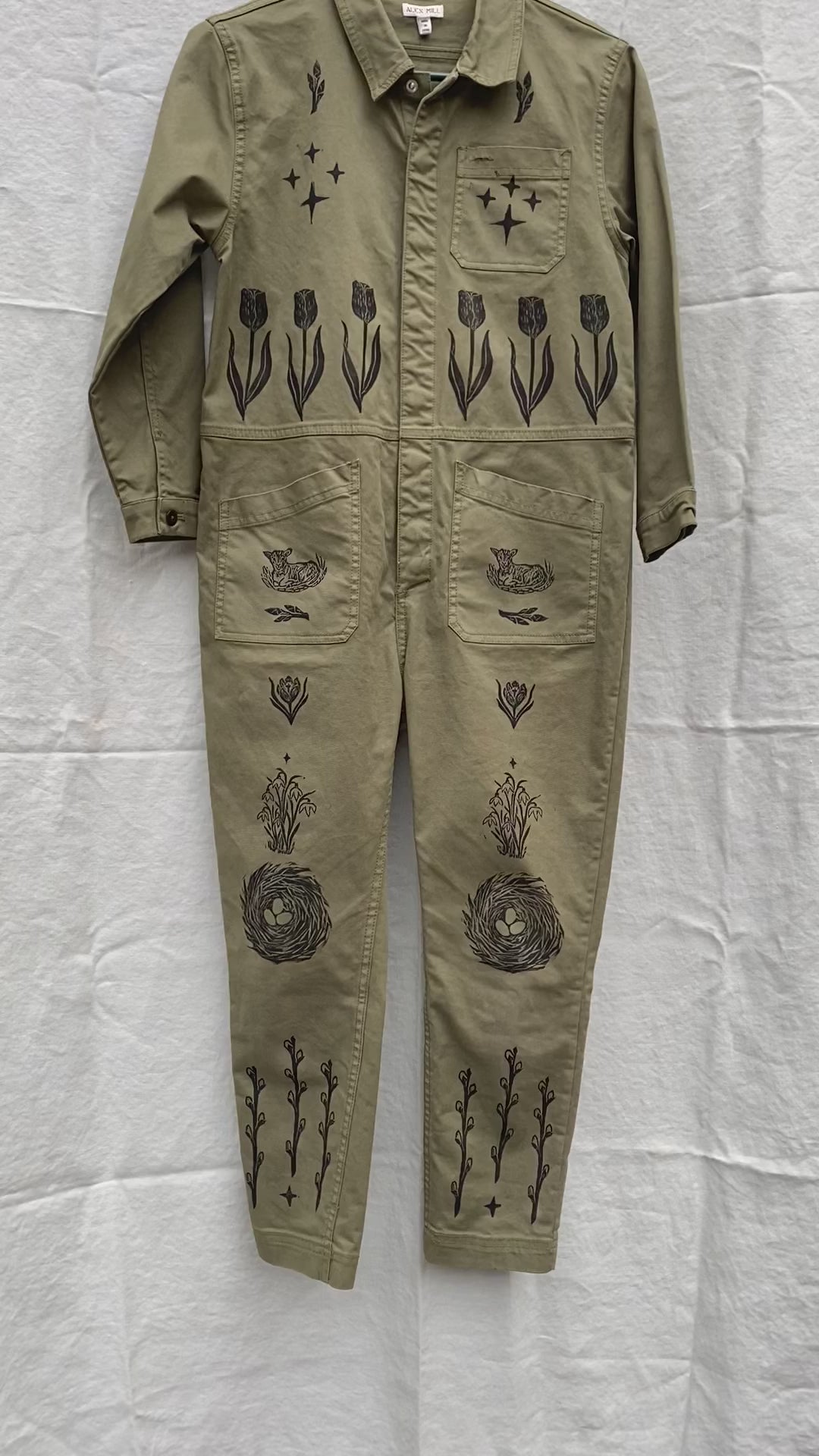 Up-cycled, hand-printed with hand-carved stamps, inspired by the beauty and magic of the early spring season.