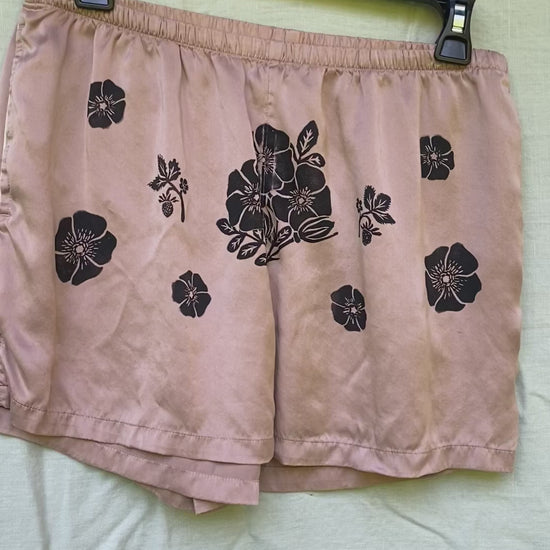 Up-cycled, one of a kind, hand-printed with hand-carved stamps, inspired by the beauty and magic of the early summer glory, solstice time, the full strawberry moon.