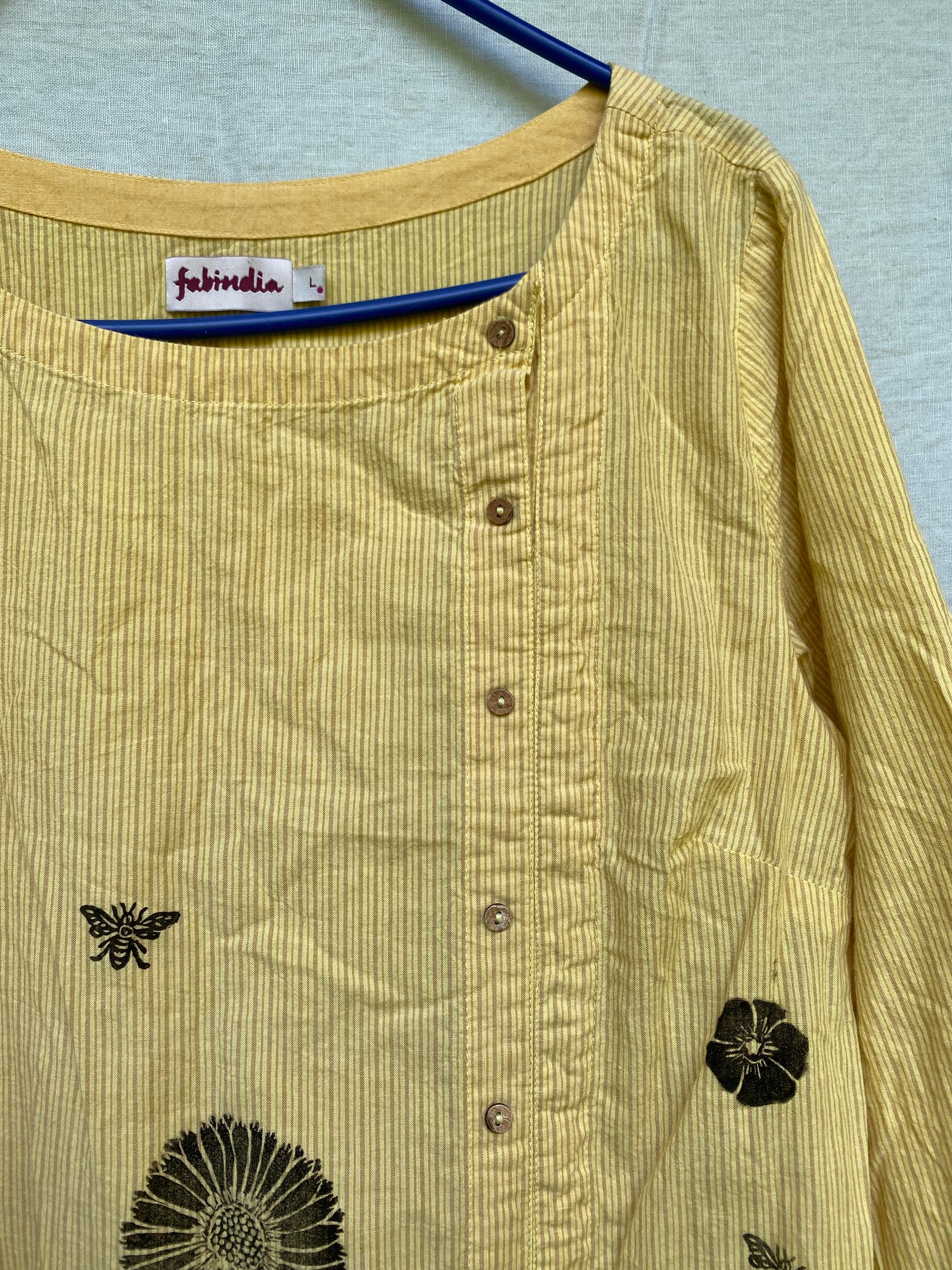 Brand: Fabindia, size Large, 100% cotton, cute buttons, side slits, lightweight